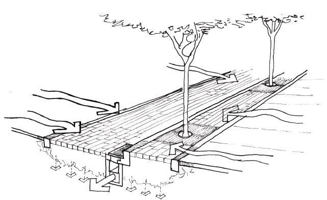 DRAINS INTEGRATED INTO SHRUB BEDS