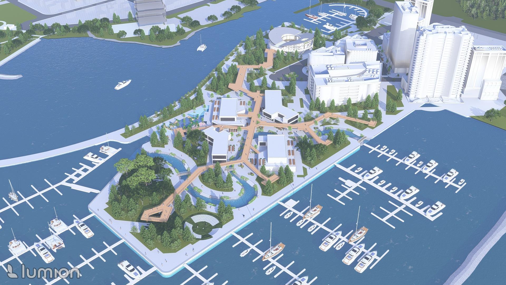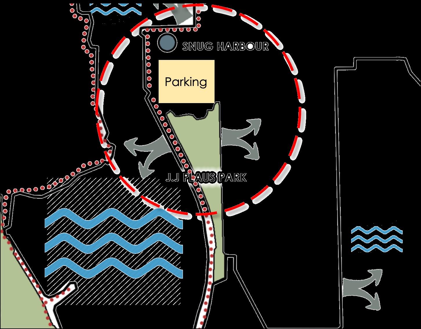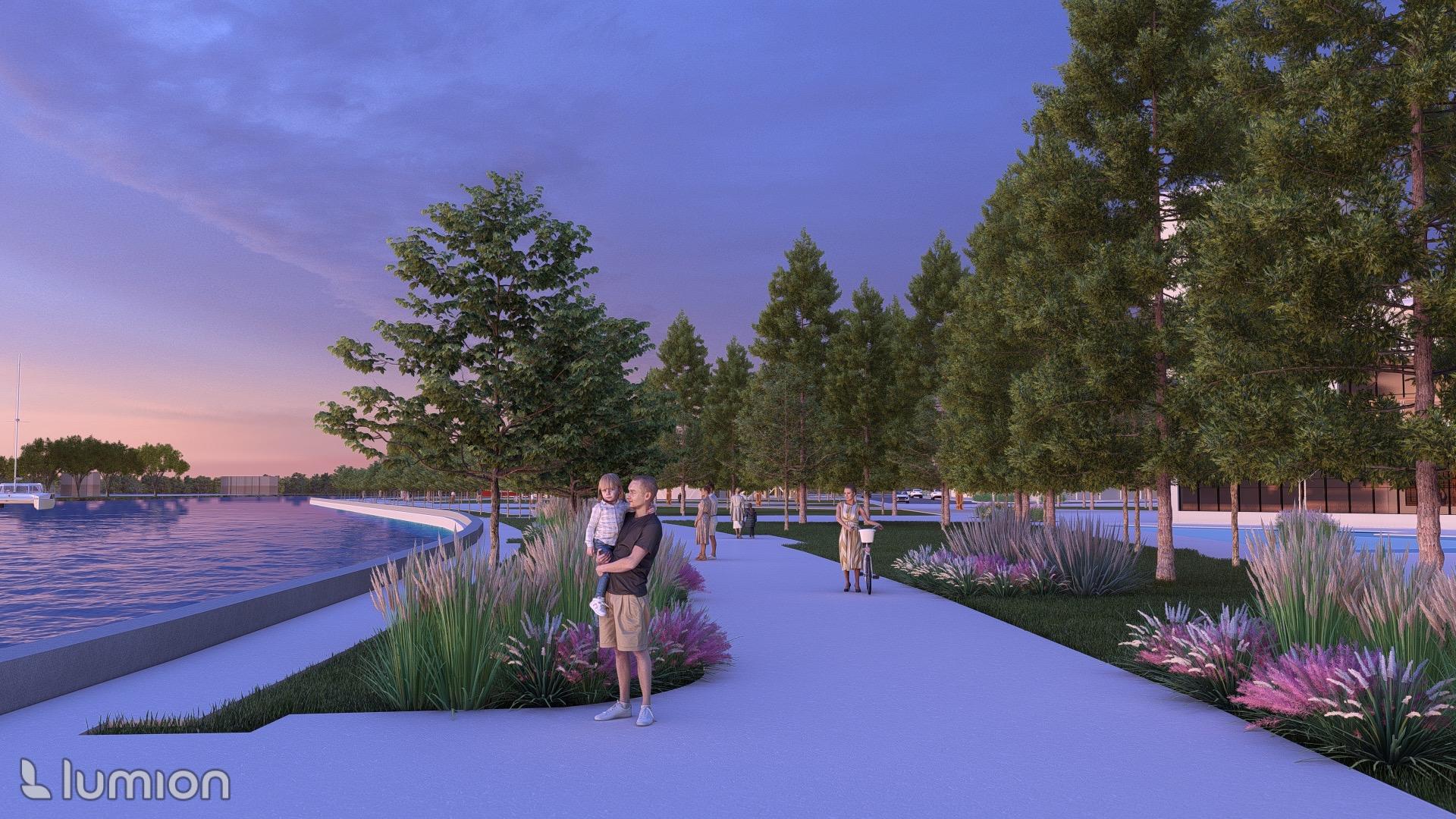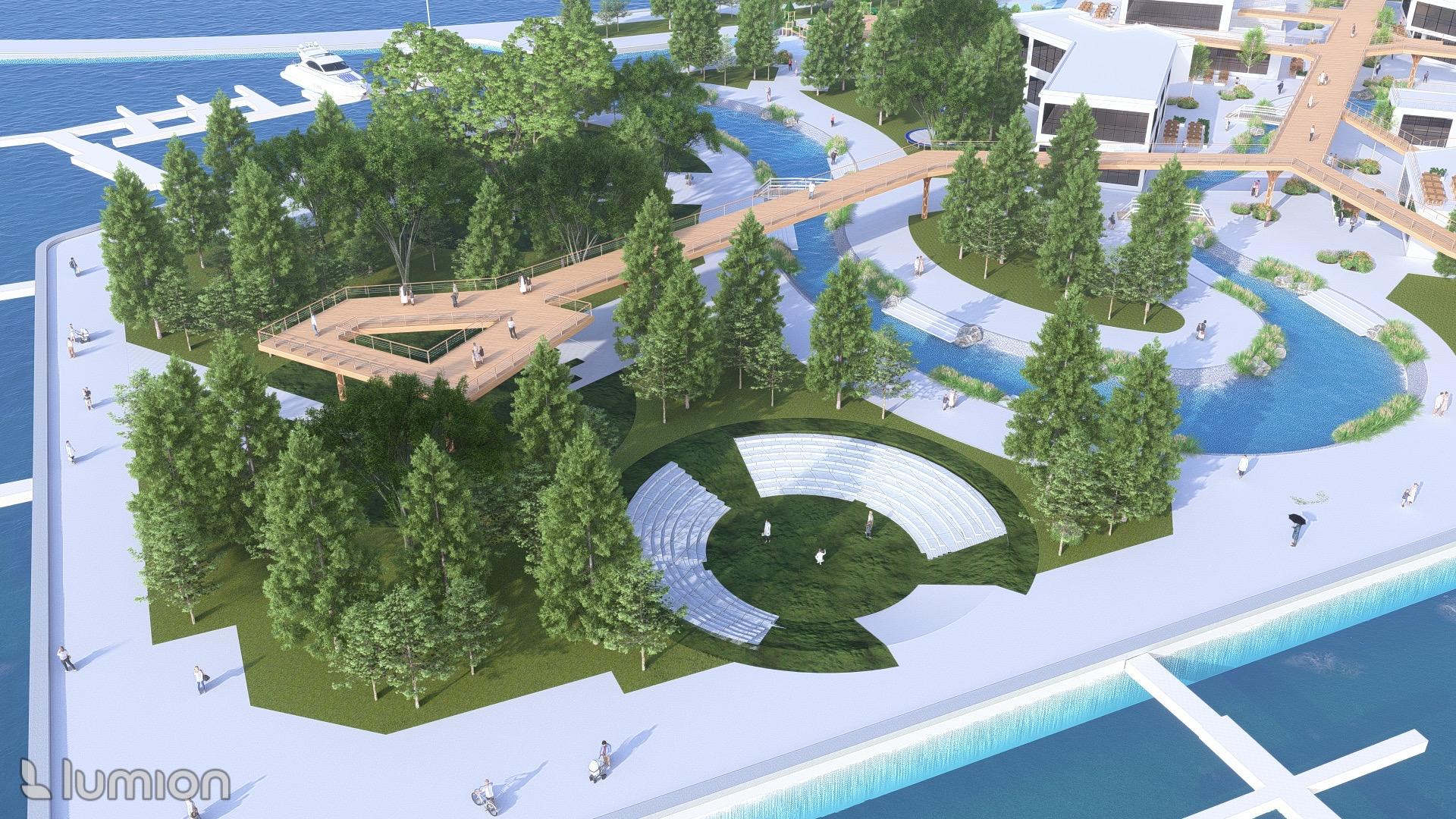 meandering throughout the harbor forms the backbone of provides an unobstructed pedestrian pathway but also offers viewing point that grants the users a panoramic view of