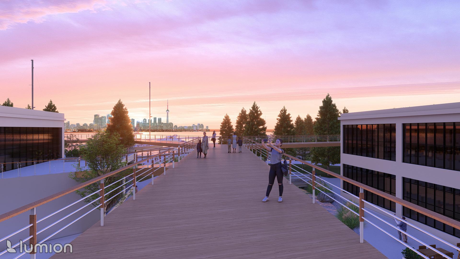 The Passage provides vistas of the skyline of Toronto and gives an overview of the entire site by creating elevated and unobstructed views.