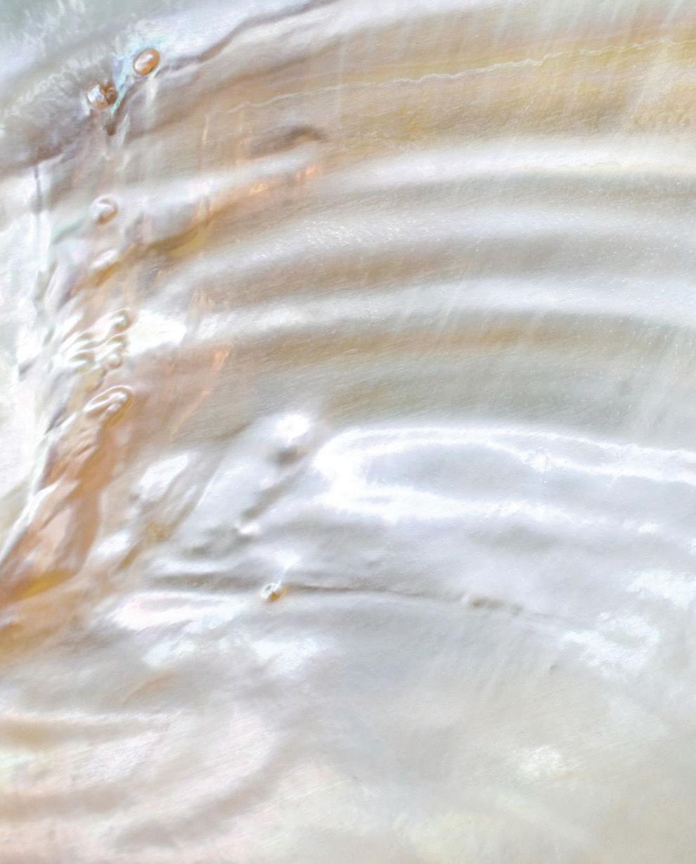 A subtle strie with a pearlescent sheen, this pattern flows in soft, irregular lines that catch the light like the inner surface of a seashell.