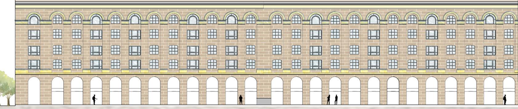 Due to constant refurbishments, the materiality pallette of the wharf was updated according to time. In late 20 th century, a glass and steel barrel-vaulted roof was erected over the former dock area in a Victorian style, providing shade to the Galleria area.