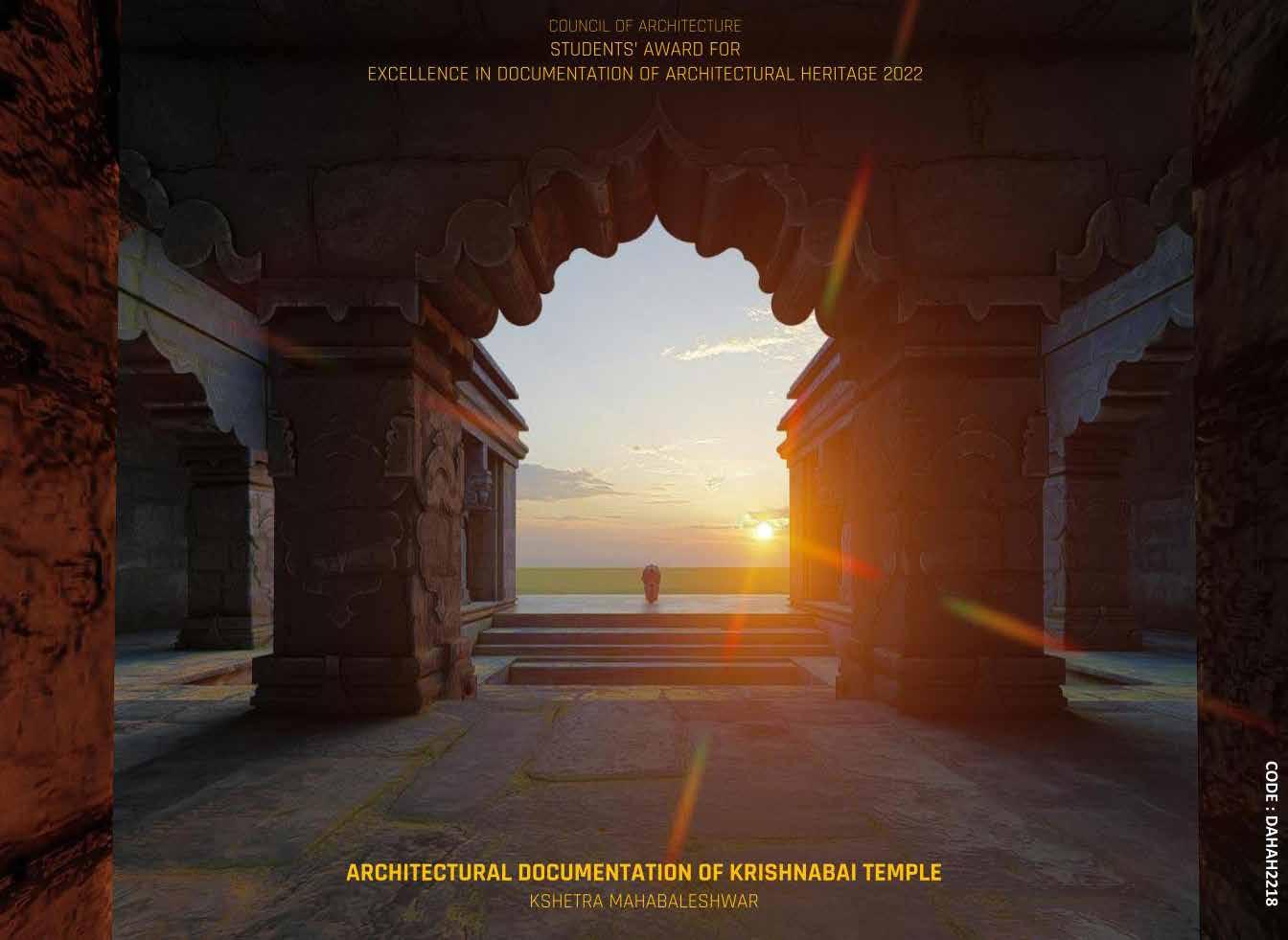 COA Students Award For Exellence in documentation Of Architetctural Heritage 2022 : Krishnabai Temple, Mahabaleshwar. (Zonal winners | National level : 2nd Citation)