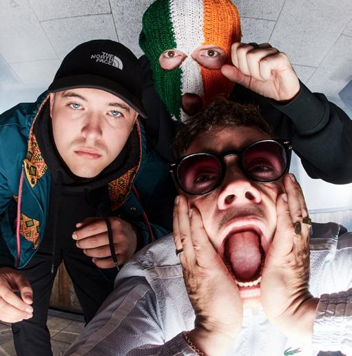 you still haven’t been to bed since the night before. But the Irish trio are almost certainly the most fun you can have before your frst breakfast pint’s properly gone down. Móglaí Bap spends most of the set running in circles around the stage, topless, can of Red Stripe in hand, while his lyrical foil Mo Chara is impressively tight, lending a smattering of control to the chaos. The moshpit is full of balaclavaclad fans having a big one, while ‘Your Sniffer Dogs Are Shite’’s titular chant is projected in massive letters onto the back screen. It’s glorious madness but with a message, as fnal chants of ‘Free Palestine’ are backed by a closing screen bearing the statement as they leave the stage.