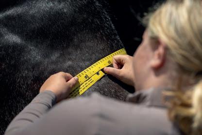 2. Take hold of the zero end of the weight tape then place the other end over the top of his back just behind his withers.