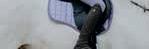 Walk your pony large around the arena with a loose rein and check in with each part of your body. Focus on sitting evenly in the saddle, engaging your core and using your aids (hands and legs) correctly.