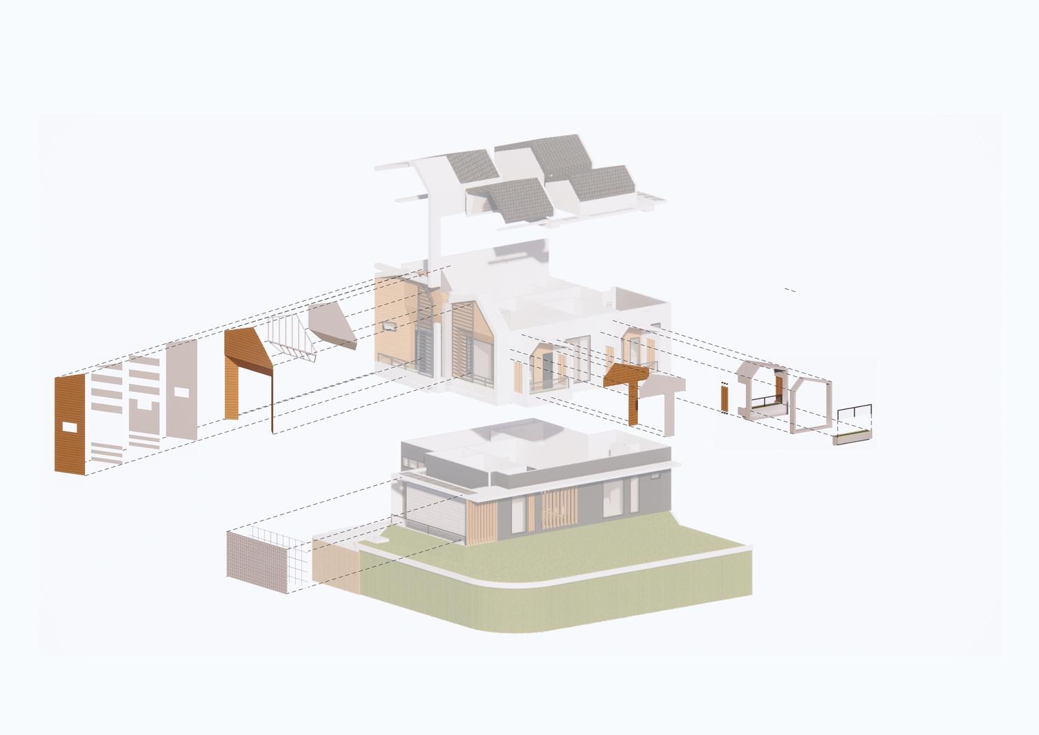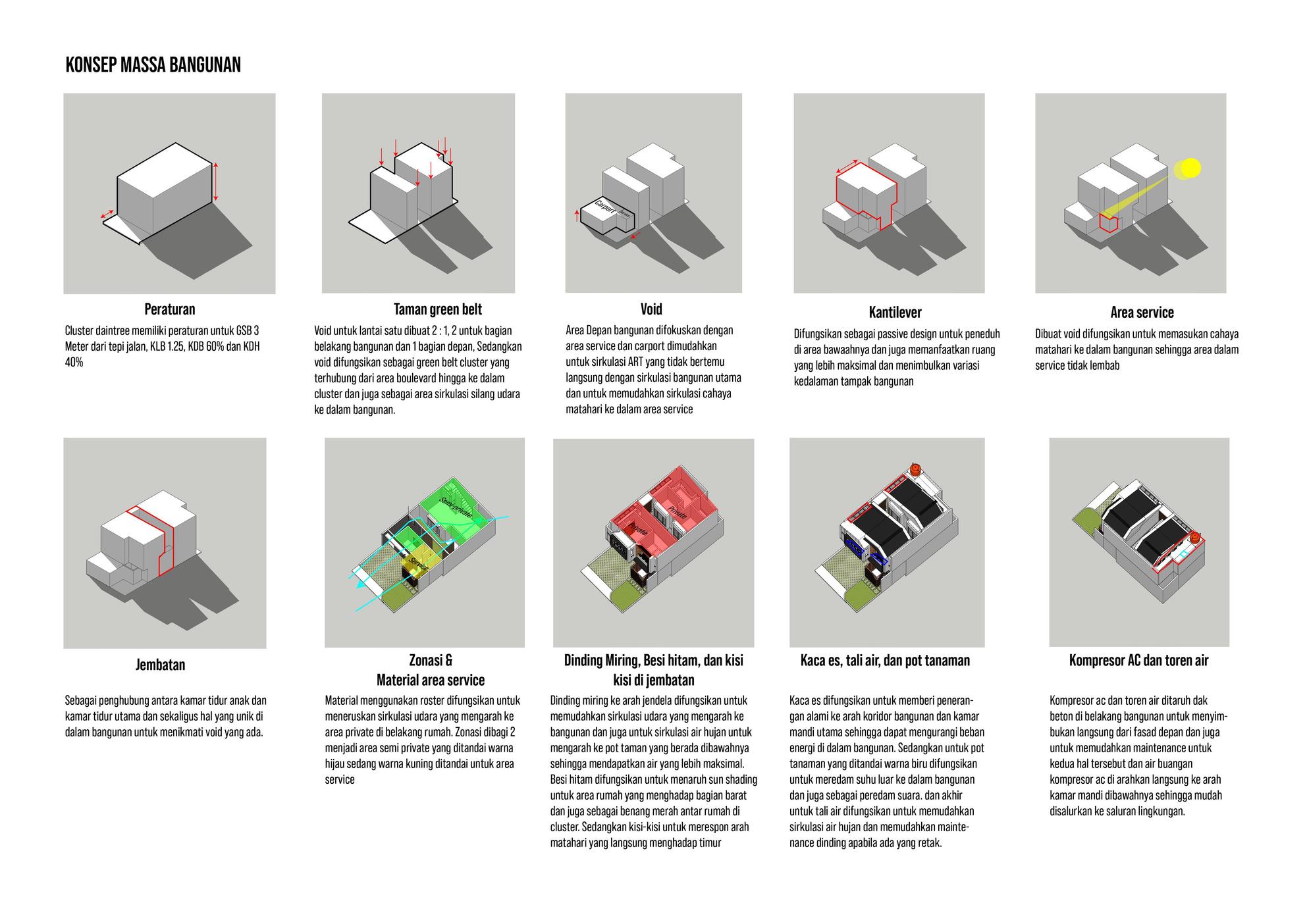 This mass composition shows the process of forming curves in the building, which eventually creates an open space in the house. These open spaces then become the main attraction of the house because natural ventilation is finally created.