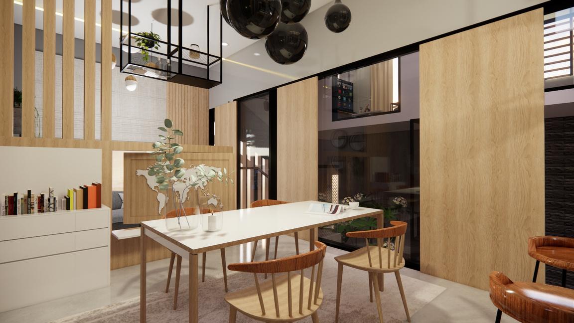 The chosen style was quite simple, the addition of wood material creates a different space experience when people entering thru the area.