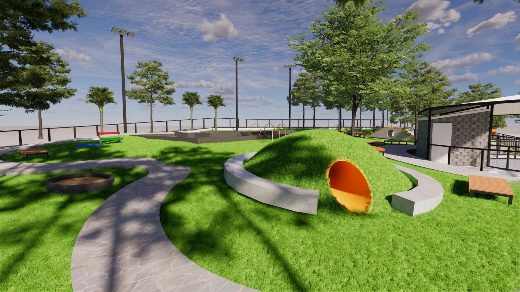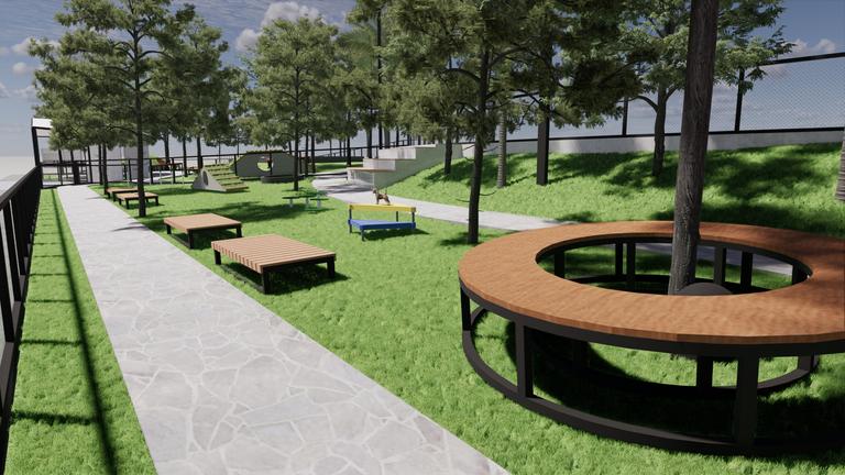 This project focuses on creating a new landscape area to be used as a dog park. The contoured area is the main problem solving on this project, because the contoured area will provide various dog play facilities will be made.