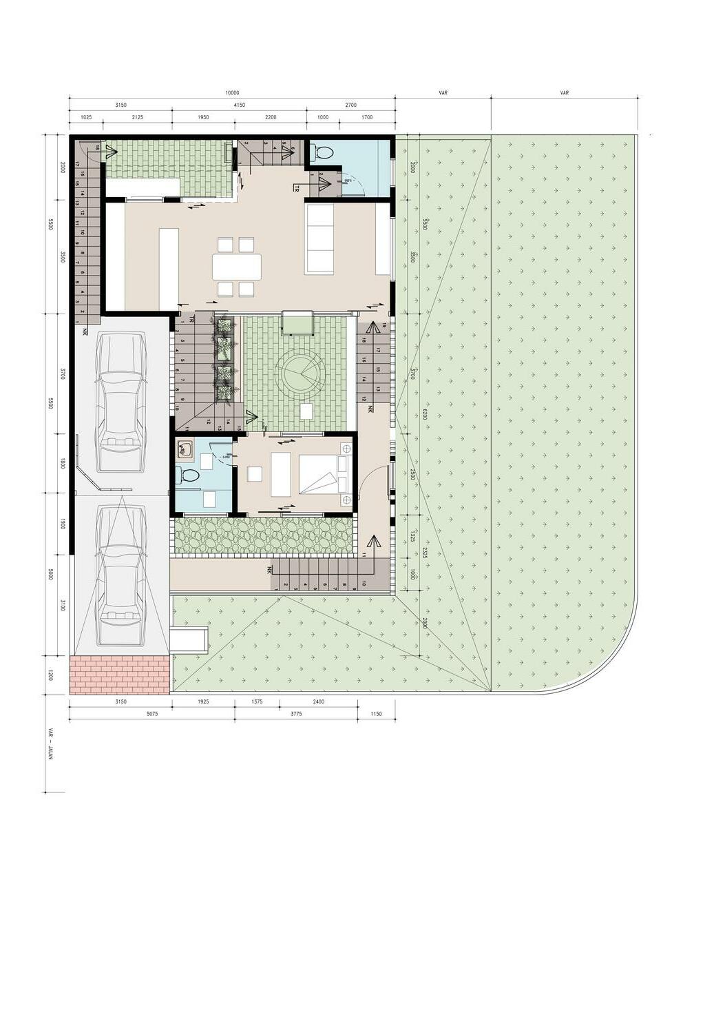 The Green Belt concept presents a garden that intertwined to each room, and each houses.