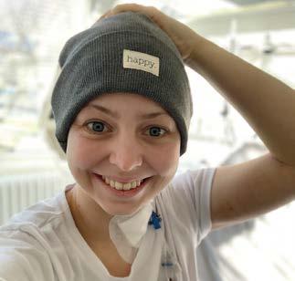 Anika mit ihrer happy-Mütze nach der Transplantation