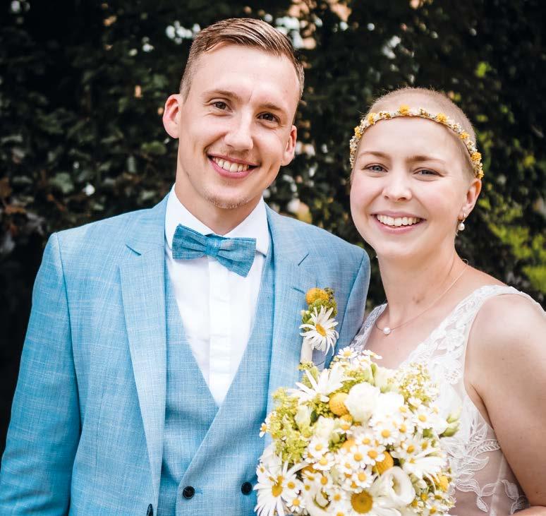 Worte zu fassen. Wir wussten auch, was eine Spende bedeutet, da Marc im Jahr 2021 selbst Stammzellen an eine Patientin aus England gespendet hatte. Die Zeit in der Klinik im Rahmen der Transplantation war sehr hart. Was mein Körper in der Zeit geleistet hat, ist unvorstellbar. Das Highlight in der Zeit waren die Besuche von Marc und meiner Familie an der Fensterfront des Zimmers. Meine Liebsten haben alles gegeben. Sie waren immer für mich da. Der Moment, als ich alle wieder in den Arm nehmen durfte und frische Luft geatmet habe, ist unbezahlbar. Ich habe es so genossen, es war das schönste Geschenk nach den harten Wochen.“