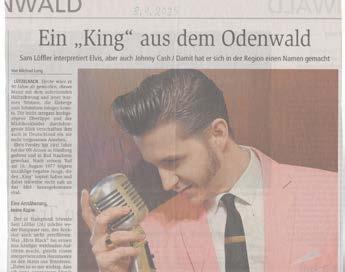 Einen besonderen Abend erlebten die Besucher in Neustadt/ Odenwald. Während Erika Bornhorst, die langjährige Unterstützerin der José Carreras Leukämie Stiftung über die jeweiligen Stationen des King of Rock‘n Roll plauderte, gab Elvis Fan Sam Löffler gesanglich sein gelungenes Debut. Sam, der Erika Bornhorst schon als 16jähriger im Jahr 2015 siebenmal zu Veranstaltungen begleitet hatte, war nun nach 10 Jahren – bei der 40. Veranstaltung wieder an ihrer Seite für den guten