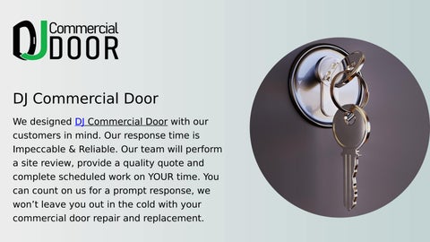 We designed DJ Commercial Door with our customers in mind. Our response time is Impeccable & Reliable. Our team will perform a site review, provide a quality quote and complete scheduled work on YOUR time. You can count on us for a prompt response, we won’t leave you out in the cold with your commercial door repair and replacement.