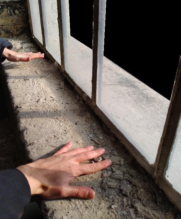 6. Doorstep Concrete doorstep on betumen matt, emphasising the weight of the wall. 1o Incline.