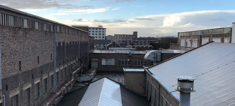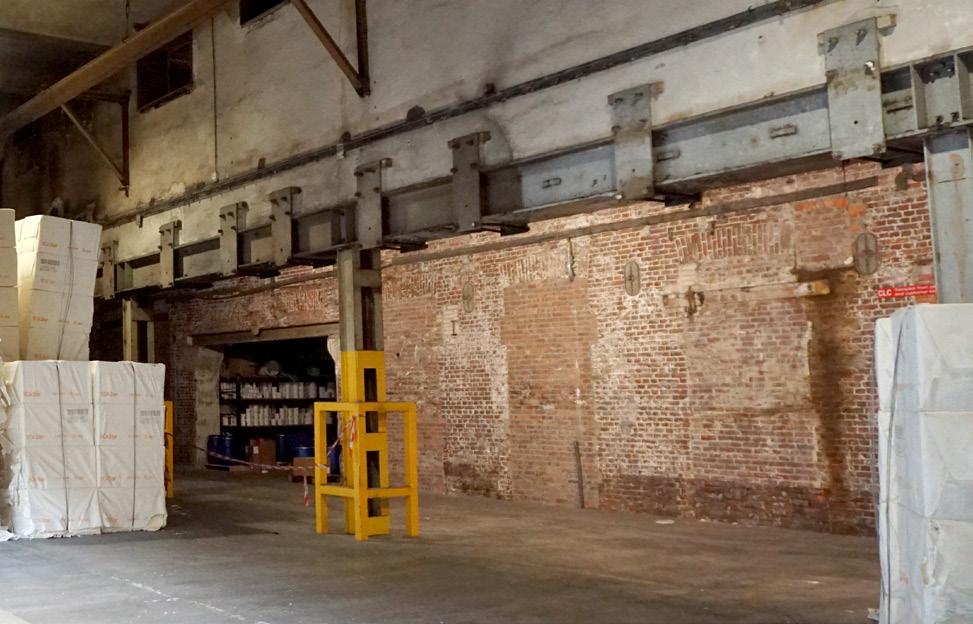The factory was built in several stages over the course of more than 150 years resulting in a complex accumulation of architecture. The factory now forms a closed-off part of the city of which only a fraction is still in active use. The majority consists of a maze of derelict structures that have fallen into an urban hibernation. Over the course of its construction, layer upon layer was added according to the needs of the moment, resulting in a superstructure of brick walls and concrete columns, connected by ad hoc shed roofs. The main body of the factory is a mazelike continuum of dark spaces, waiting to be braught to life.