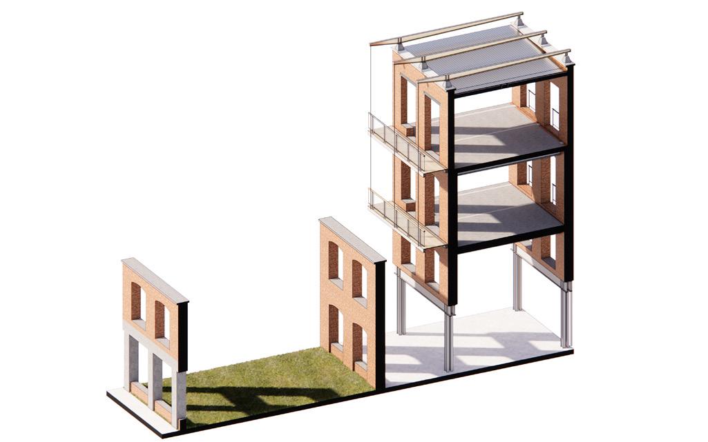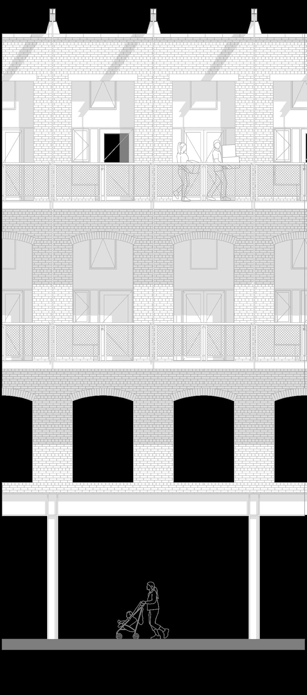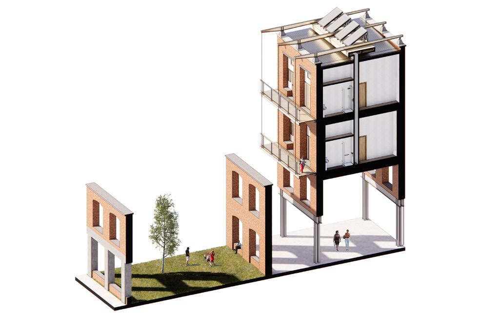 Modern appliances Additional insulation packages, ensuring modern standards are added to the inside of the existing walls. A central ventilation shaft runs along the roof, branching out for every two units.