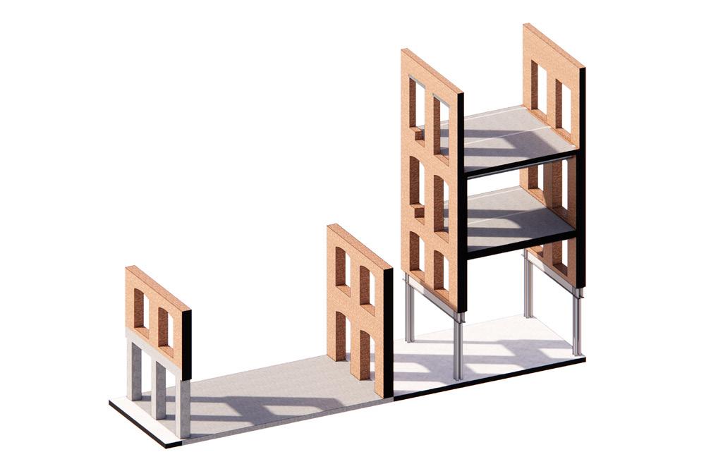 Masonry mass and lightweight additions 0,25 0,5 0,75 m