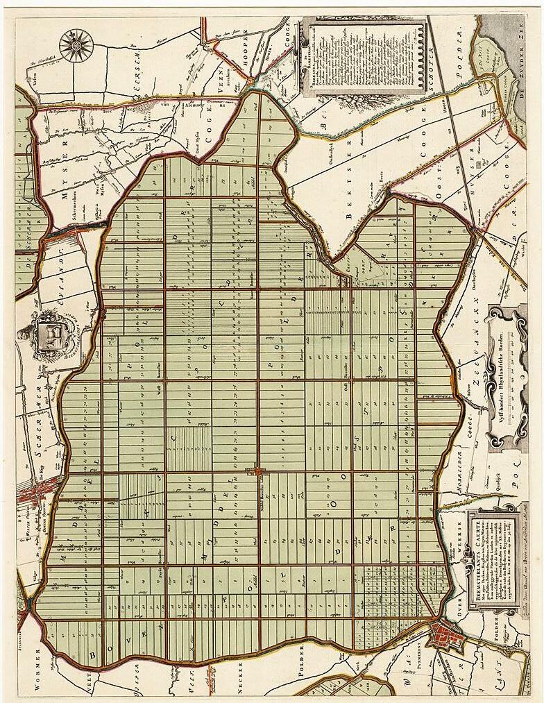 At the start of the 17th century, the Beemster was a big, stormy lake, located centrally in the Dutch province of North Holland. It was located close to Amsterdam, a city that was experiencing an economic boom. Amsterdam more than doubled in population between 1590 and 1610, from 33.000 to 72.000 (Nusteling 2018, p. 62). In order to feed the growing population, merchants of Amsterdam started to look at the possibility of reclaiming land (van Cruyningen 2015, p. 11).