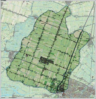 The brothers Henrik and Dirk van Os, who were two of the founders of the Dutch east India company (VOC), saw an opportunity to invest in the reclamation of the Beemster. They founded the Beemster cooperation in 1607. In return for financial investments, investors could buy parcels of the soon to be reclaimed lake. The cooperation hired the local windmill expert Jan Adriaanszoon Leeghwater to oversee the technical endeavour. A ring dyke and a ring canal were built around the lake, and an arrangement of mills was installed to pump the water from the lake into the surrounding canal. The mills started pumping in 1609 and by 1612, the lakebed had emerged (van Cruyningen 2015, p. 11). On the new land, the architects of the Beemster, whose names remain unknown (Mourik 2004, p. 80), created a grid that was used in order to divide the land into parcels (Aten, Bossaers, Misset 2012, p. 3). Soon after the reclamation, the farmers in the Beemster started to produce cheese. Over the course of the past 400 years, cheesemaking has developed Fig. 1.2: van Bolhuis, Peter ‘Areal view. Source: https://www.canonvannederland.nl/nl/beemster. - Production in the Anthropocene