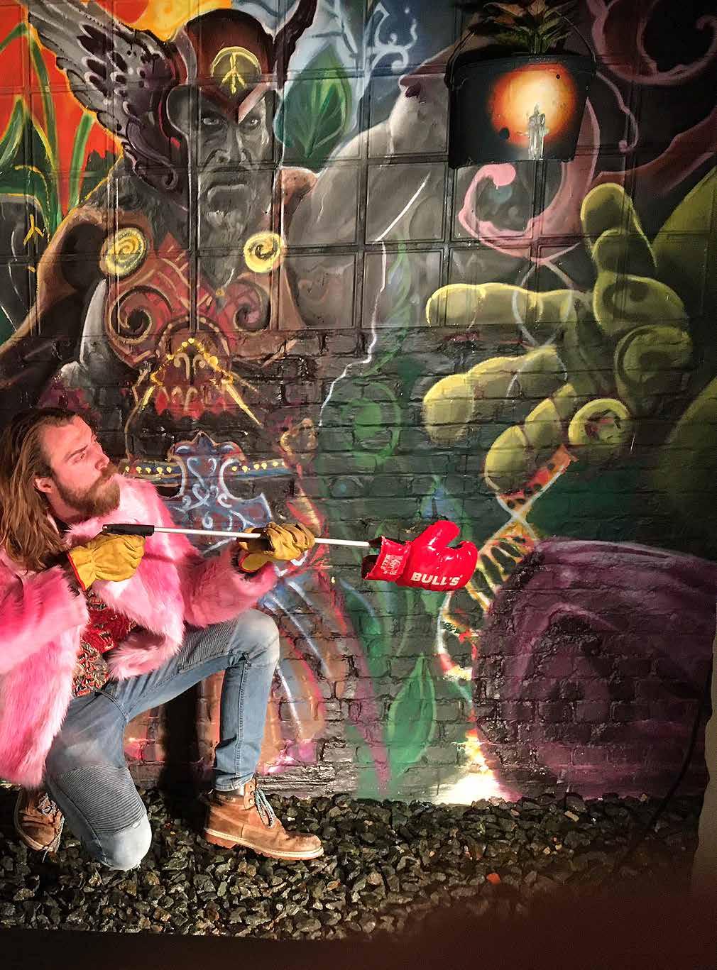 In December 2023, the gallery could be found in Vilvoorde, as one of the winners of the property competition organised by the Vilvoorde non-profit association Broeilab. djeu gallery opened its doors in the former Damart shop at 75 Leuvense straat, an empty building that was completely pimped out into an art gallery for the pop-up occasion - before it was finally demolished. To decorate the premises, Brussels graffiti artist with Portuguese roots Kevin Stiers, aka KIWI, was called in to paint murals. Visitors could choose a fun outfit from our arty wardrobe and take selfies in front of the murals.