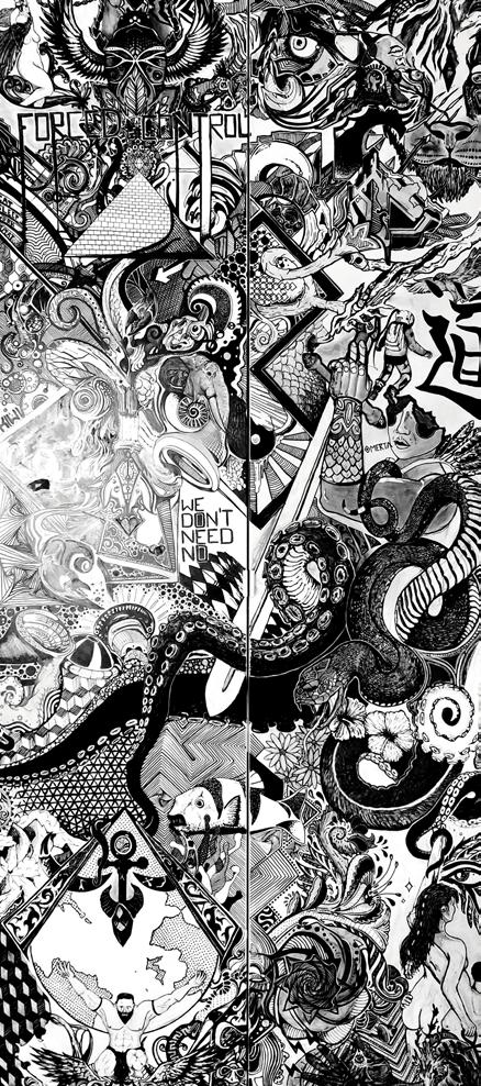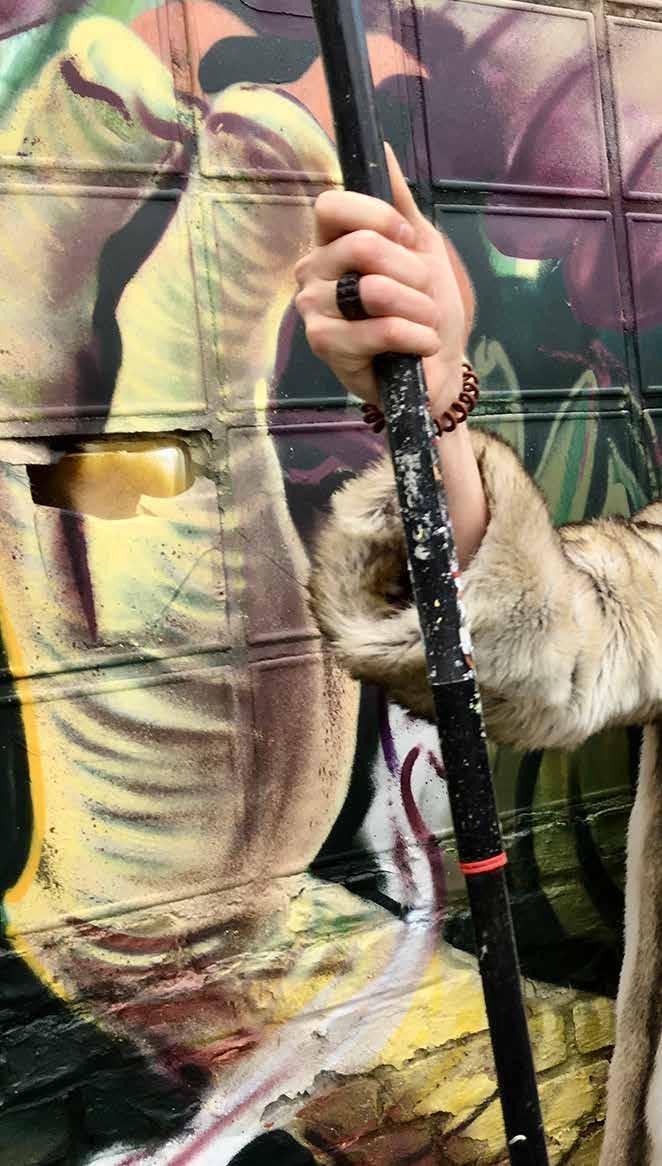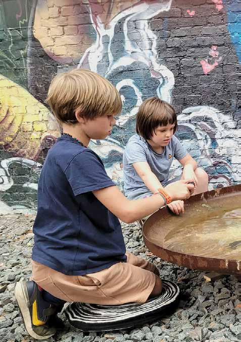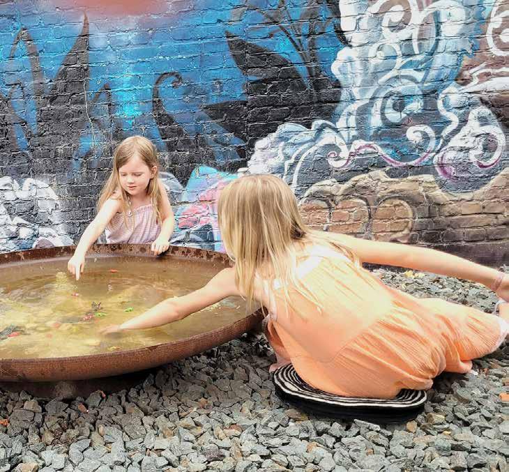 • • • • At the exhibition ATLANTIS with graffiti art work by KIWI, children could create their own Atlantis fantasy world with aquarium sand and toy animals in an improvised pond.