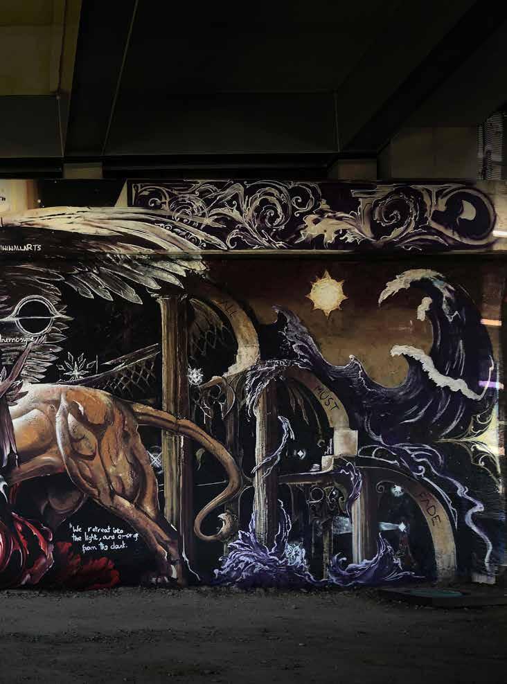 KIWI is geen onbekende in Vilvoorde: hij maakte graffiti in de ‘Kruitfabriek’, het ‘ZenneLab’, maar ook in het straatbeeld Herensesteenweg en scholen ‘KlimOp’ en ‘GO! Het Atheneum’.
