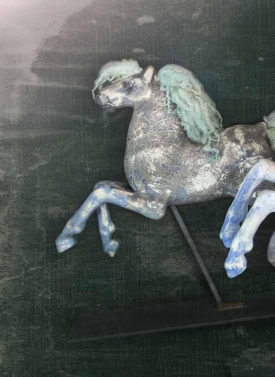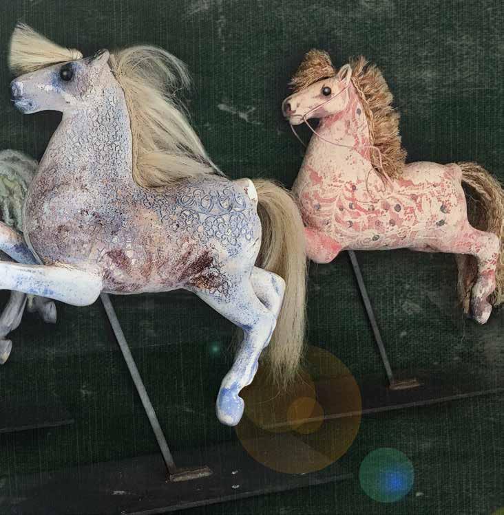 • • • • Sigrid is a horse lover. That is why in her “Cuddly Ceramics” collection, you will mainly find Trojan and fairground horses. The fairground horses are adorned with sheep hair, rope or real horse manes.
