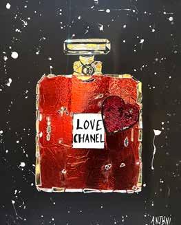 te brengen. Vandaag de dag breng ik deze wisselende helderheid over op mijn doeken. Ik schilder over de seizoenen, vlinders, wilde dieren en de zee. En ja, de elegante vorm van het Chanelflesje is een blijvend onderwerp voor mijn werken.“