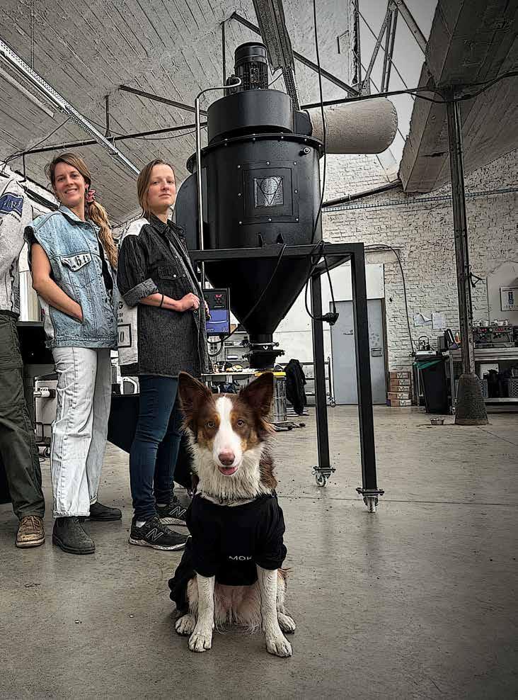 PORTRAIT: co-workers roastery, David, Marlies en Paulien met hond, Tak