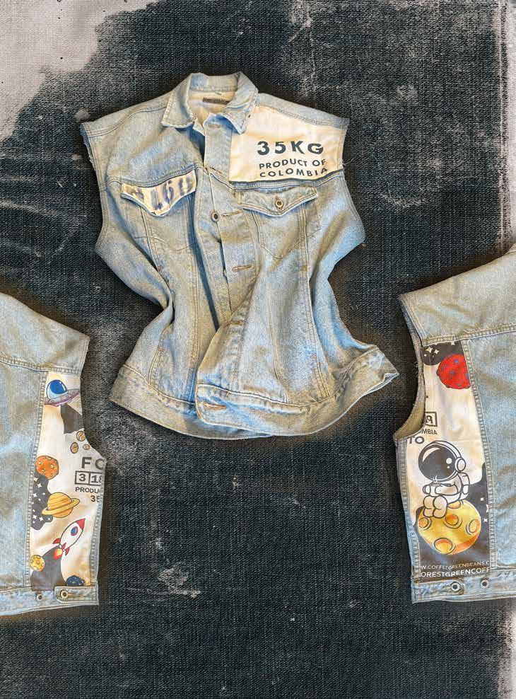 By repurposing these coffee bags into clothing, we give both old clothing and the coffee bags a new lease on life.