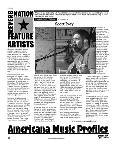 Americana Rhythm ispublished six timesa year.All correspondence should be sent to PO Box 45, BridgewaterVA, 22812 or email to greg@americanarhythm.com. Copiesof Americana Rhythmare madeavailablefree at variouspickup locationswithin thepublication’sregion. Subscriptionsareavailableinside theUnited States(only) for $24 US currency made payable by check or money ordersent to, Subscriptionsat PO Box 45, Bridgewater, VA, 22812. Foreign subscription requests should be sent to greg@americanarhythm.com. Copyright 2022. All rights reserved. Reproduction of any content, artworkor photographs isstrictly prohibited without permission ofthe publisherororiginal owner. All advertising material subject to approval.