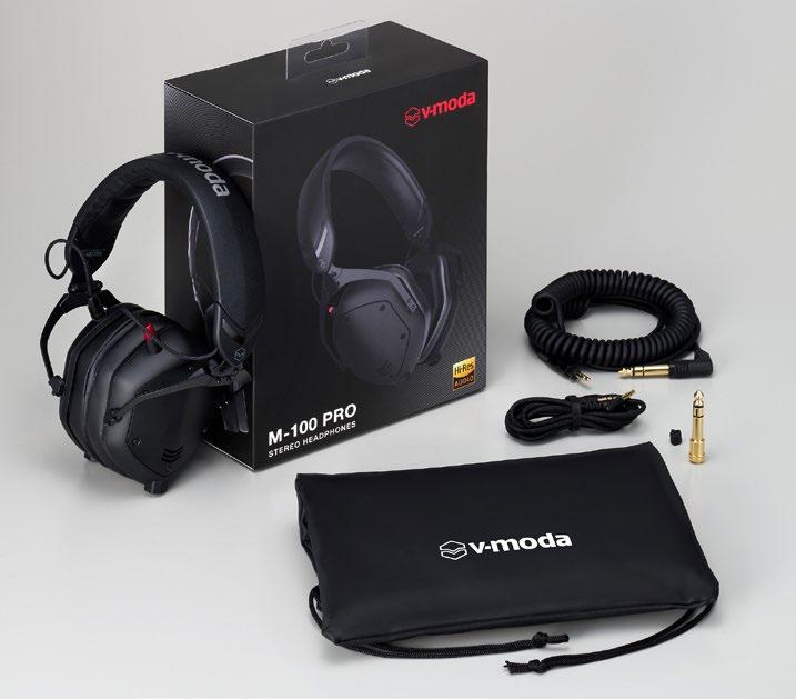 V-MODA has released the M-100 PRO headphones for DJs. The new fagship in the long-running M-100 series for professional DJs, the M-100 PRO features ceramic-coated drivers and bass ducts for crystal-clear reproduction of kick drums, hi-hats, and other sounds that defne the groove. The closed-back design and comfortable memory foam ear pads provide a wide, punchy soundstage and excellent sound isolation while performing in loud clubs and on booming festival stages. Swivel ear cups extend the comfort, enabling seamless switching between stereo monitoring and one-ear listening for monitoring other sources and engaging with audiences. Detachable coil and straight cables are included to suit different workfows and gear setups. The foldable design and included carrying pouch take up minimal space while traveling, and the ear cups are now detachable, allowing users to purchase replacements as needed.