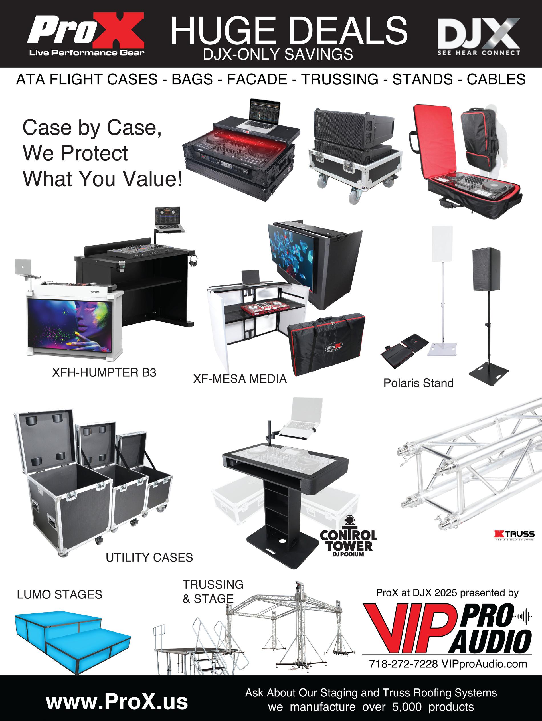 Ultimate DJ Giveaway: As always, at the end of the show, one lucky DJX attendee will have his or her name pulled from the hopper and walk away with a treasure trove of gear from the following companies: Pioneer DJ by AlphaTheta; Rockville; ProX; Odyssey; Walkabout Carriers; Ultimate Ears; Other World Computing; and EPK/Greenfeld Productions. For the latest on DJX, please visit www.djxshow.com. (For more on DJX Sponsored Seminars, please see Pg. 12.)