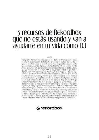 82 AAA – BURNING MAN 88 AAA – DECIBEL OPEN AIR Crónicas Artículos 94 ÁLBUMES – BRUNO GARCA 96 EDM – WILLY ALCOCER 97 TECHNO – VICTOR SANTANA 98 UK GARAGE – BORJA COMINO 99 HOUSE – ALEJANDRO SERRANO 100 DRUM&BASS– DANIEL PANIAGUA 101 BREAKS – EDUARDO CARBONELL 34 SPARTAQUE 44 BORIS BREJCHA 52 MANYFEW 58 JON & THE RABBIT 64 EMBARAZO, CARRERA E INDUSTRIA 68 REKORDBOX 76 NEURODIVERGENCIA Críticas 64 58 52