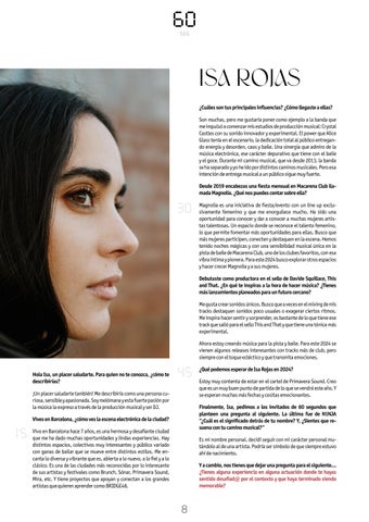 ISA ROJAS ¿Cuáles son tus principales influencias? ¿Cómo llegaste a ellas? Son muchas, pero me gustaría poner como ejemplo a la banda que me impulsó a comenzar mis estudios de producción musical: Crystal Castles con su sonido innovador y experimental. El power que Alice Glass tenía en el escenario, la dedicación total al público entregando energía y desorden, caos y baile. Una sinergia que admiro de la música electrónica, ese carácter depurativo que tiene con el baile y el goce. Durante mi camino musical, que va desde 2013, la banda se ha separado y yo he ido por distintos caminos musicales. Pero esa intención de entrega musical a un público sigue muy fuerte. Desde 2019 encabezas una fiesta mensual en Macarena Club llamada Magnolia. ¿Qué nos puedes contar sobre ella? Magnolia es una iniciativa de fiesta/evento con un line up exclusivamente femenino y que me enorgullece mucho. Ha sido una oportunidad para conocer y dar a conocer a muchas mujeres artistas talentosas. Un espacio donde se reconoce el talento femenino, lo que permite fomentar más oportunidades para ellas. Busco que más mujeres participen, conecten y destaquen en la escena. Hemos tenido noches mágicas y con una sensibilidad musical única en la pista de baile de Macarena Club, uno de los clubes favoritos, con esa vibra íntima y pionera. Para este 2024 busco explorar otros espacios y hacer crecer Magnolia y a sus mujeres. Debutaste como productora en el sello de Davide Squillace, This and That. ¿En qué te inspiras a la hora de hacer música? ¿Tienes más lanzamientos planeados para un futuro cercano? Me gusta crear sonidos únicos. Busco que a veces en el mixing de mis tracks destaquen sonidos poco usuales o exagerar ciertos ritmos. Me inspira hacer sentir y sorprender, es bastante de lo que tiene ese track que salió para el sello This and That y que tiene una tónica más experimental. Ahora estoy creando música para la pista y baile. Para este 2024 se vienen algunos releases interesantes con tracks más de club, pero siempre con el toque ecléctico y que transmita emociones. ¿Qué podemos esperar de Isa Rojas en 2024?