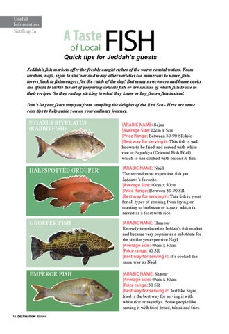 Quick tips for Jeddah’s guests Jeddah’s fish markets offer the freshly caught riches of the warm coastal waters. From taraban, najil, sejan to sha’our and many other varieties too numerous to name, fishlovers flock to fishmongers for the catch of the day! But many newcomers and home cooks are afraid to tackle the art of preparing delicate fish or are unsure of which fish to use in their recipes. So they end up sticking to what they know or buy frozen fish instead. Don’t let your fears stop you from sampling the delights of the Red Sea - Here are some easy tips to help guide you on your culinary journey.