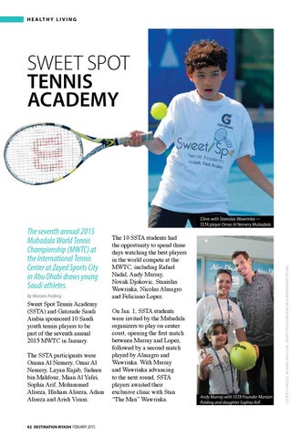 Sweet Spot Tennis Academy (SSTA) and Gatorade Saudi Arabia sponsored 10 Saudi youth tennis players to be part of the seventh annual 2015 MWTC in January. The SSTA participants were Osama Al Nemery, Omar Al Nemery, Layan Rajab, Sadeen bin Mahfouz, Maan Al Yafei, Sophia Arif, Mohammed Alireza, Hisham Alireza, Adam Alireza and Arish Virani.