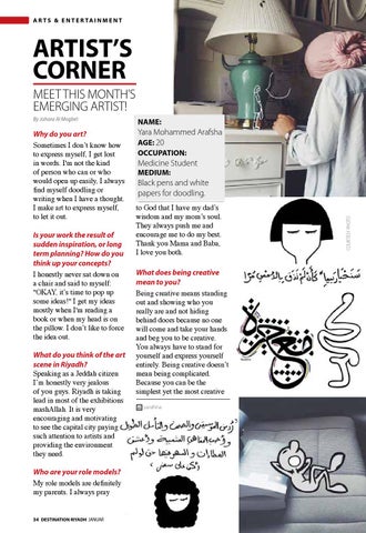 ARTIST’S CORNER MEET THIS MONTH’S EMERGING ARTIST! By Johara Al Mogbel