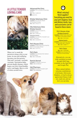 Khobar Veterinary Clinic Location: King Fahd Rd., Rakah Al Shamaliyah, Khobar Tel: +966-13-8575173