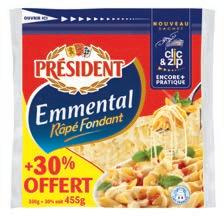 4 30% OFFERT 3€99 EMMENTAL RÂPÉ FONDANT PRESIDENT 29% M.G. 350 g + 30% offert = 455 g Le kg : 8,77€ -25% TOUT DE SUITE AVANT REMISE 2€99 APRÈS REMISE 2€24 LE BON BRIE CŒUR DE LION 28% M.G. 200 g Le kg : 11,21€ -30% TOUT DE SUITE AVANT REMISE 2€49 APRÈS REMISE 1€74 FROMAGE FONDU PRESIDENT - Spécial croque - Spécial burger 12 tranches - 200 g Le kg : 8,72€ -30% TOUT DE SUITE AVANT REMISE 2€99 APRÈS REMISE 2€09 CAMEMBERT DE CAMPAGNE PRÉSIDENT 20% M.G. 250 g Le kg 8,37€ -25% TOUT DE SUITE AVANT REMISE 2€49 APRÈS REMISE 1€87 BEURRE MOULÉ BRETON BRIDEL - Doux - Demi-sel 250 g Le kg : 7,47€ -33% TOUT DE SUITE AVANT REMISE 2€99 APRÈS REMISE 2€00 L’ILE FLOTTANTE AUX ECLATS DE CARAMEL LA LAITIÈRE NESTLE 4 x 100 g = 400 g Le kg : 5,01€ -33% TOUT DE SUITE AVANT REMISE 2€29 APRÈS REMISE 1€53 VELOURS DE CRÈME LA LAITIÈRE NESTLE - Caramel beurre salé - Chocolat au lait 4 x 85 g = 340 g Le kg : 4,51€ -33% TOUT DE SUITE AVANT REMISE 2€59 APRÈS REMISE 1€74 YAOURT 0% M.G. LIGHT & FREE - Fraise - Cerise - Mûre myrtille 4 x 125 g = 500 g Le kg 3,47€ -33% TOUT DE SUITE AVANT REMISE 2€39 APRÈS REMISE 1€60 ACTIVIA AU BIFIDUS SAVEUR COCO 4 x 125 g = 500 g Le kg : 3,20€ -25% TOUT DE SUITE AVANT REMISE 4€99 APRÈS REMISE 3€74 VELOUTÉ FRUIX DANONE - Fruits rouges - Fruits jaunes 8 x 125 g = 1 kg -25% TOUT DE SUITE AVANT REMISE 3€99 APRÈS REMISE 2€99 DANONINO PAILLE - Fraise - Fruits rouges pêche abricot 6 x 100 g = 600 g Le kg : 4,99€ 12+4 OFFERTS 4€99 CRÈME DESSERT VANILLE ET CHOCOLAT DANETTE 12 x 115 g + 4 offerts = 1,84 kg Le kg : 2,71€ -33% TOUT DE SUITE AVANT REMISE 1€99 APRÈS REMISE 1€33 CRÈME DESSERT DANETTE 5 variétés disponibles 4 x 125 g = 500 g Le kg : 2,67€ -33% TOUT DE SUITE AVANT REMISE 2€99 APRÈS REMISE 2€00 YAOURT SMARTIES NESTLE - Nature - Fraise 4 x 120 g = 480 g Le kg : 4,17€ -33% TOUT DE SUITE AVANT REMISE 3€99 APRÈS REMISE 2€67 BABA AU RHUM BONNE MAMAN 4 x 140 g = 560 g Le kg 4,77€ OU FRAISIER BONNE MAMAN 4 x 100 g = 400 g Le kg 6,68€ * Voir modalités en page 8. -33% TOUT DE SUITE AVANT REMISE 2€99 APRÈS REMISE 2€00 LE YAOURT À LA FRAISE LA LAITIÈRE NESTLE 4 x 125 g = 500 g Le kg 4,01€