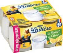 4 -25% TOUT DE SUITE AVANT REMISE 3€69 APRÈS REMISE 2€77 LE MINI BEURRE GASTRONOMIQUE ELLE & VIRE - Doux - Demi-sel 80% M.G. 16 portions - 200 g Le kg : 13,84€ -25% TOUT DE SUITE AVANT REMISE 2€29 APRÈS REMISE 1€72 CRÈME ÉPAISSE BRIDÉLICE 15% M.G. 50 cl Le litre : 3,44€ -25% TOUT DE SUITE AVANT REMISE 2€59 APRÈS REMISE 1€94 CRÈME SEMI ÉPAISSE SI LÉGÈRE ELLE & VIRE 4% M.G. 3 x 20 cl = 60 cl Le litre 3,24€ -30% TOUT DE SUITE AVANT REMISE 3€49 APRÈS REMISE 2€44 FETA AOP GRECQUE ISLOS 23% M.G. 150 g Le kg 16,29€ -33% TOUT DE SUITE AVANT REMISE 2€49 APRÈS REMISE 1€67 L’ORIGINAL TARTARE AIL & FINES HERBES 34,5% M.G. x10 - 160 g Le kg : 10,43€ -33% TOUT DE SUITE AVANT REMISE 2€59 APRÈS REMISE 1€74 TARTARE NOIX & ECLATS D’AMANDES 37% M.G. 150 g Le kg : 11,57€ 30% OFFERT 5€69 CHAUSSÉE AUX MOINES 25% M.G. 340 g + 30% offert = 442 g Le kg : 12,87€ -33% TOUT DE SUITE AVANT REMISE 4€39 APRÈS REMISE 2€94 12 COQUES AU LAIT ENTIER P’TIT LOUIS 22,9 % M.G. 240 g Le kg 12,26€ -25% TOUT DE SUITE AVANT REMISE 4€99 APRÈS REMISE 3€74 ACTIMEL - Original & fraise - Original 0% M.G. 8 x 100 g = 800 g Le kg : 4,68€ -25% TOUT DE SUITE AVANT REMISE 2€39 APRÈS REMISE 1€79 ACTIVIA AU BIFIDUS - Citron - Coco 4 x 125 g = 500 g Le kg : 3,59€ -33% TOUT DE SUITE AVANT REMISE 3€39 APRÈS REMISE 2€27 LE YAOURT LA LAITIÈRE NESTLE - Citron - Fraise - Vanille 4 x 125 g = 500 g Le kg : 4,54€ * Voir modalités en page 8 -30% TOUT DE SUITE AVANT REMISE 3€99 APRÈS REMISE 2€79 PLAT PRÉPARÉ WEIGHT WATCHERS - Ravioli au saumon - Tomates farcies - Couscous oriental 290 g Le kg 9,63€