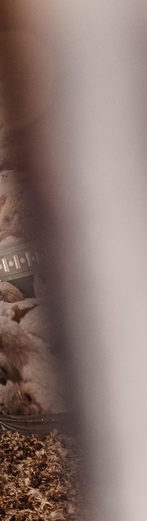 kycklingar gå omkring och picka utomhus? Sällan, för att inte säga aldrig, eftersom 99 procent av turbokycklingarna aldrig får se solens ljus. De växer dessutom så fort att deras egna ben knappt kan bära dem längre. Det är onekligen en ruggig utveckling. Djur behandlas som maskiner snarare än de kännande individer de faktiskt är. Det sker dessutom bakom stängda dörrar i djurfabrikerna och den insyn som allmänheten har är begränsad till romantiserande reklamfilmer. Därför är jag så otroligt glad och stolt över att Djurens Rätt alltid står på djurens sida och visar djurens verklighet. Den här sommaren kommer du kunna få en helt ny upplevelse av hur det är att vara turbokyckling i en svensk djurfabrik, läs mer på sidan 51. Det är verkligen dags att vi vågar se sanningen i vitögat. ●