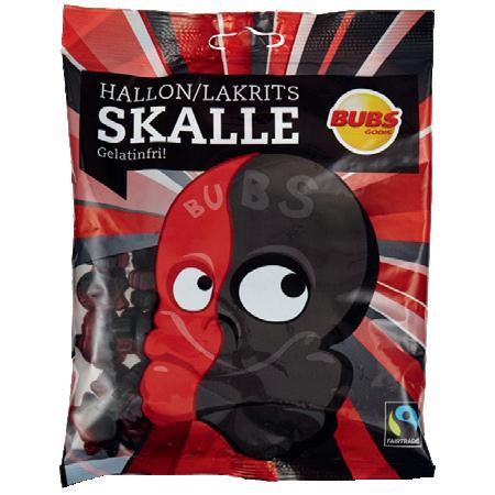 Bästa söta. Alla dödskallar från Bubs är helt vego! Vår favvo är hallonlakritsskallen. En påse kostar ungefär 20 kronor.