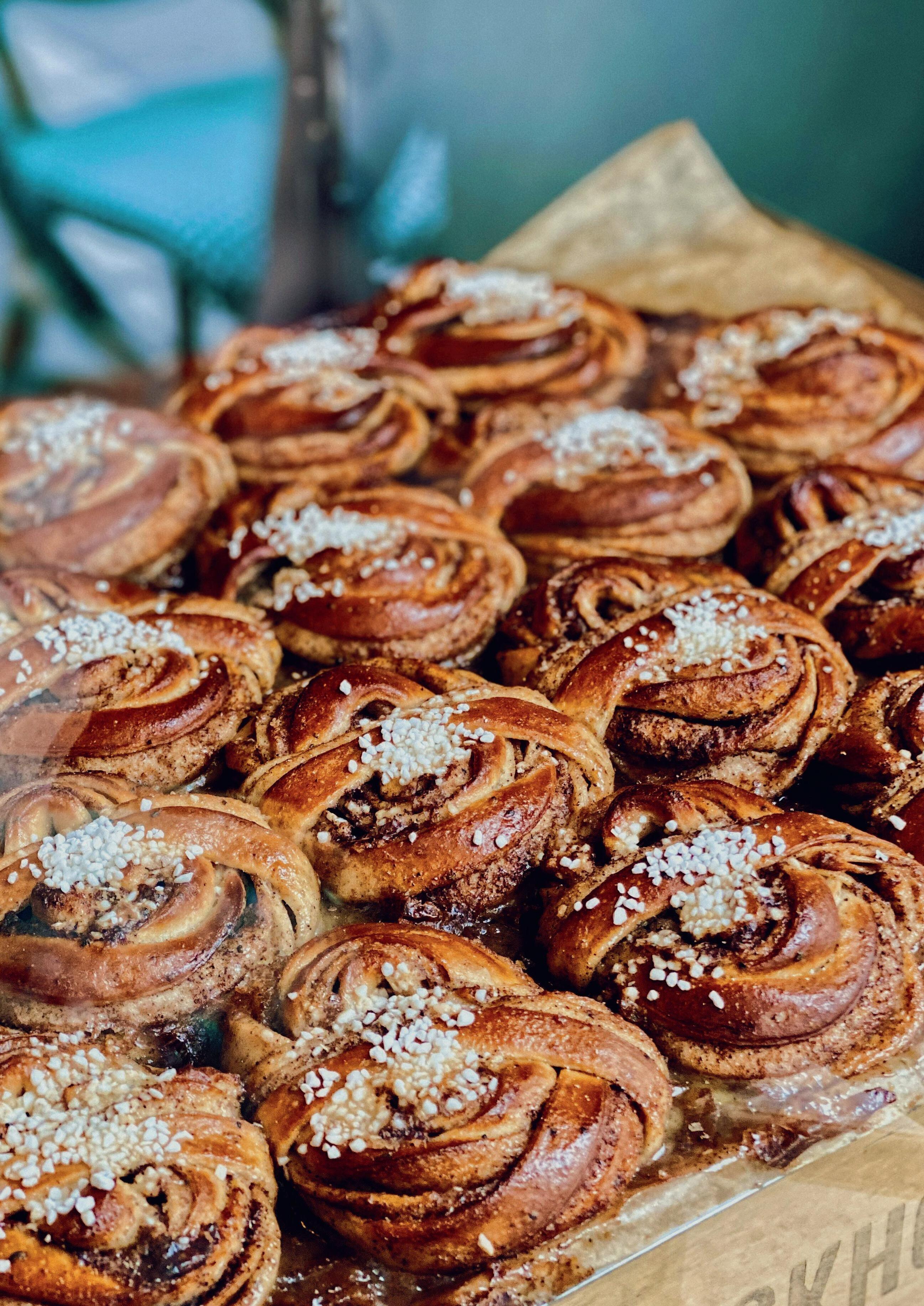 8. Lägg bullarna på en plåt, täck med bakduk och låt jäsa i en timme.