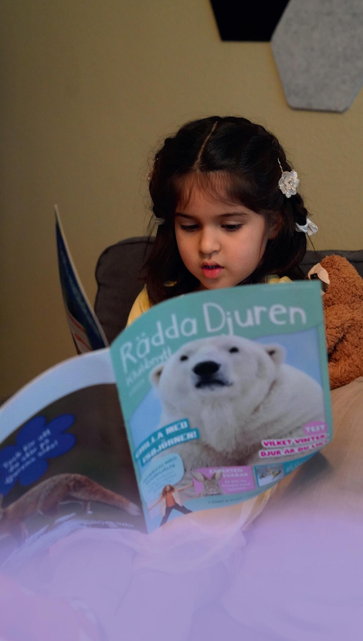 ”Jag tycker om att läsa Klubbnytt för då lär man sig om djur. Och det är kul med djurfakta! Vi brukar alltid testa pyssel och recept. Mitt bästa Klubbnytt-recept är det på våfflor! Och Knep & Knåp är alltid jättekul och klurigt.”