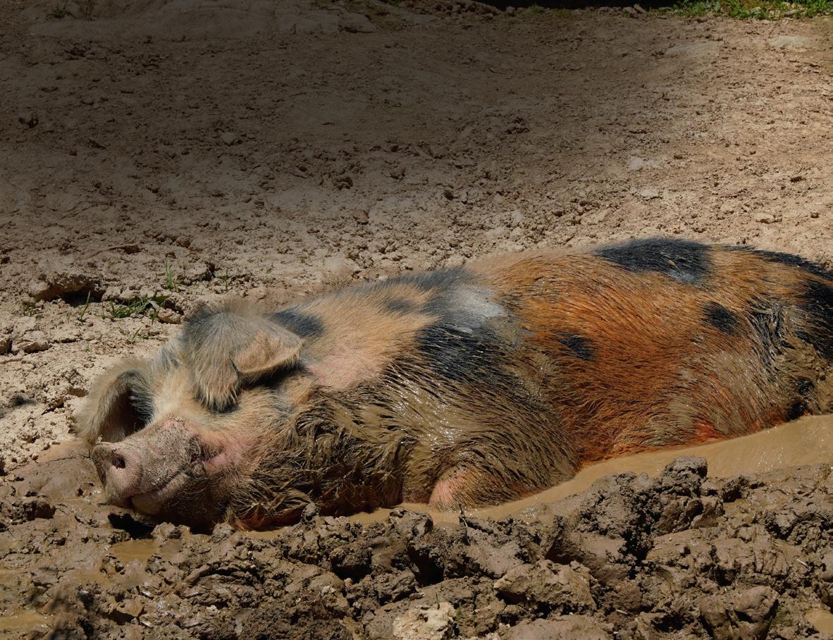 Grisar tycker det är superhärligt att sola. Problemet? Grisar har ingen päls så de bränna sig i solen kan grisar inte svettas. Därför behöver grisar kunna rulla sig i svalkande lera