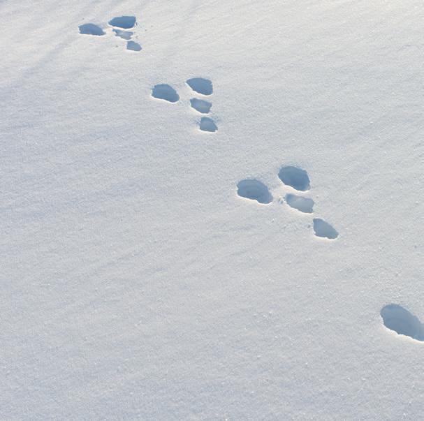 Spana efter haren! Haren finns i nästan hela Sverige. Du har störst chans att se haren i gryning och skymning, ute på stora fält – se till att vara tyst. Och så här ser spåren ut!