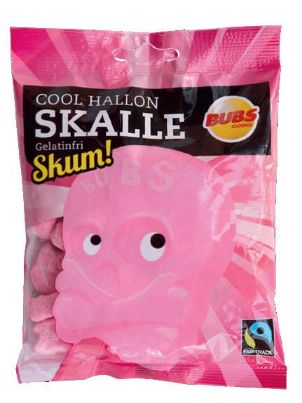Bästa dödskallen. Alla godisar från Bubs är helt vego! Finns både sött, surt och salt. Du hittar dem bland godispåsar och vid lösviktsgodiset, en påse kostar ungefär 21 kronor.