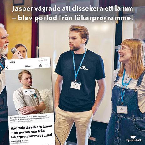 Jasper Forfang Righard, volontär hos Djurens Rätt, blev portad från sina läkarstudier vid Lunds universitet för att han har gjort valet att inte dissekera ett lamm. Det blev mycket diskussioner om portningen och om Jaspers etiska val, både i medierna och i Djurens Rätts kanaler.