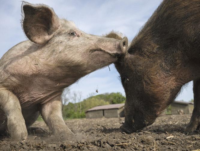 får rulla sig i lera och grisarna som trängs i mörka djurfabriker hela sina korta liv (läs mer på sidan 22). I utställningen får vi möta djurens blick på ett sätt som blir mer och mer ovanligt. Allt fler djur är instängda i fabriker och nu vill makthavare dessutom beröva korna rätten att komma ut och beta.